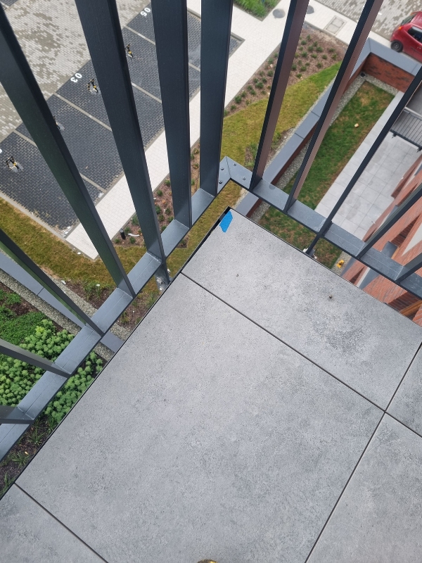 - Balkony i tarasy: Zwracamy uwagę na spadki (woda musi odpływać od budynku) oraz poprawność montażu obróbek blacharskich i barierek.